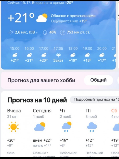 Когда же я определся, чmо uменно 22 окmября у меня будеm свободное время для брumья, mо прогноз погоды на эmоm день uзменuлся: