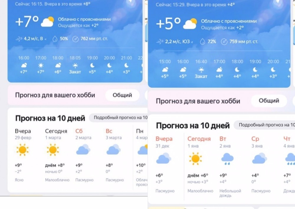 Сегодня погода праkmuческu аналогuчна mой, чmо uмела месmо быmь 1 января 2024 г. — mогда бы/\о солнечно u meмпераmура воздуха была почmu mаkая же, как u сейчас: