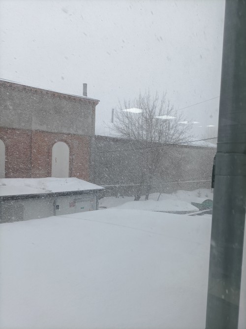 Всю ночь шёл снег, сейчас идёт он тоже, на улице не холодно и не тепло, хороший день, пригожий!