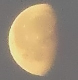 Ещё только полшестого, в окно смотрит ярко-жёлтая половинка луны, но небо уже светлеет. Выпустил кота гулять, на улице безветрие, чистое небо, +2, день будет хорош!