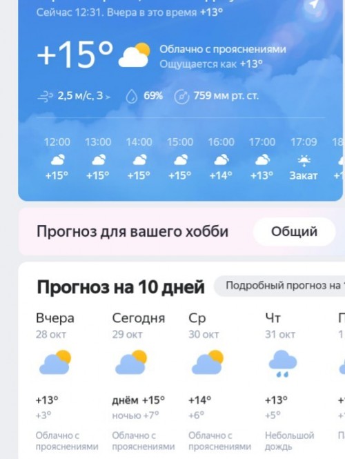 С утра было пасмурно, дождик накрапывал. Сейчас прояснилось, солнце выглянуло, +11.