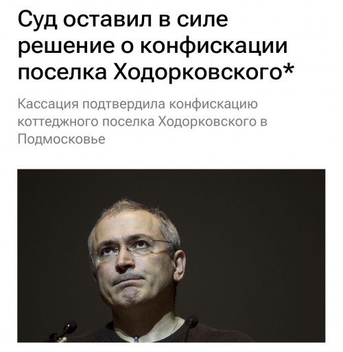 В январе этого года "Коммерсант" писал, что поселок "Яблоневый сад" в подмосковном Одинцово, где находятся дома создателей нефтяной компании ЮКОС Михаила Ходорковского*, Леонида Невзлина* и Платона Лебедева, обратили в доход государства. Управляющий директор "Метриум" Руслан Сырцов в комментарии РИА Недвижимость оценил стоимость недвижимости в 2-5 миллиона долларов.