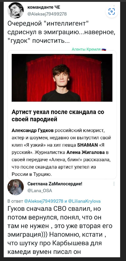 Ты поддержал тех, кто уехал, а тех кто остался и ездил на Донбасс, как Чечерина, Юта, Джанго и другие, ты не поддержал.