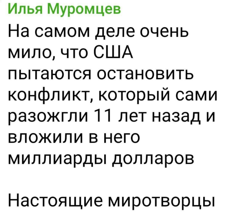 «США вели эту войну. Американские военные, Пентагон, Госдепартамент, ЦРУ. <...> Мы только что уничтожили Украину», – добавил он.