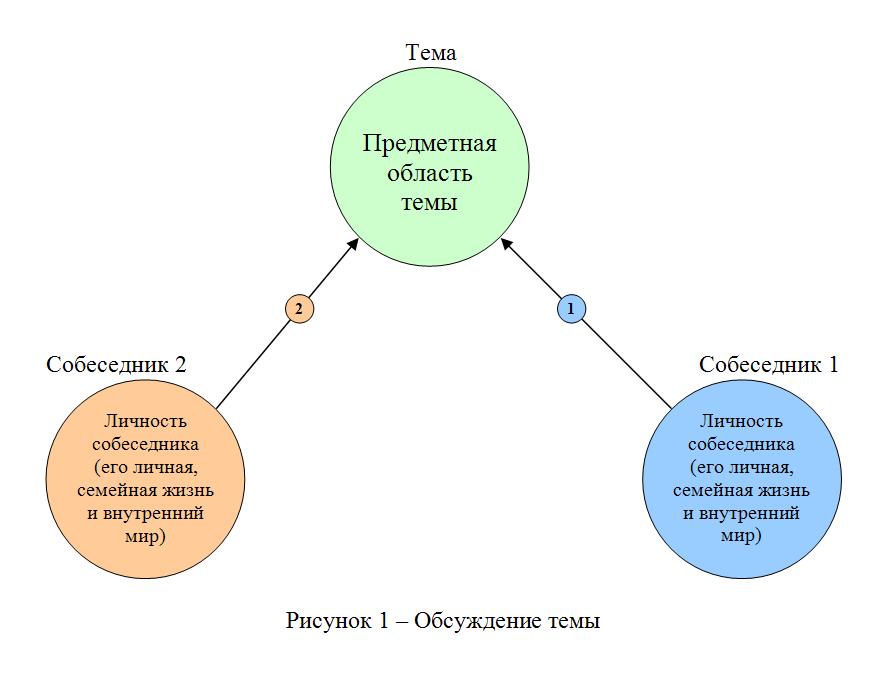 Стрелки №1 и №2 показывают, какой области уделяет внимание каждый из собеседников.