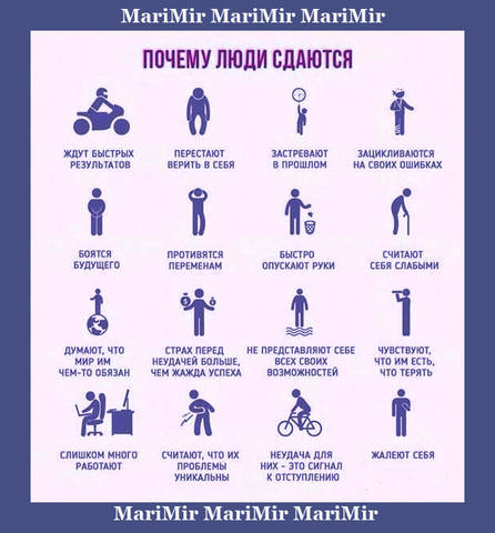 Вот маленькая табличка причин, которые заставляют нас повернуть назад. Наверняка, каждому из нас знакомо хоть что-то: