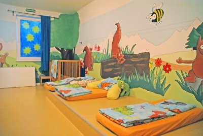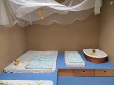 В яслях дети спят, в основном по принципу , если ребёнок хочет. Кроватей как таковых нет.