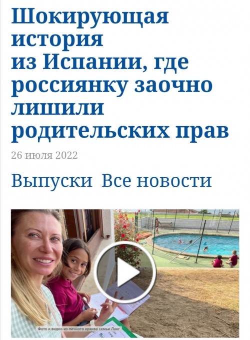 Новый громкий международный скандал. В Испании детей забрали в приют из семьи, где мать говорит по-русски. И это не спор между родителями, как уже не раз бывало с нашими гражданами в странах Евросоюза или Америке. Среди причин, которые россиянке озвучили органы опеки, — дети не ее и фактически обвинили в похищении. Фактов или документов — никаких. Но если учесть степень русофобской пропаганды в западных СМИ, то появление подобной версии не сильно удивляет.